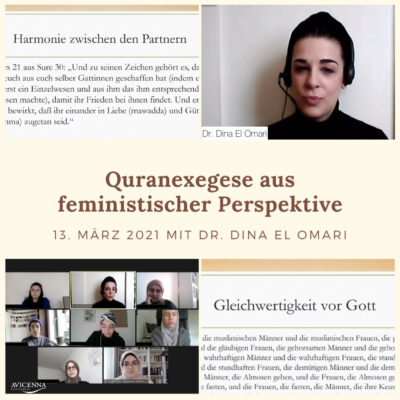 13. März 2021, Online Wie sieht eine feministische Quranexegese aus? Wie schaffen Exeget:innen einen geschlechtergerechten Zugang zum Quran? Wie mächtig ist dabei Sprache? Am 13. März 2021 tauschten sich unsere Stipendiatinnen digital mit der Theologin Dr. Dina El Omari von der Universität Münster zum Thema „Feministische Quranexegese“ aus. Die Referentin stellte den Teilnehmerinnen gängige Methoden