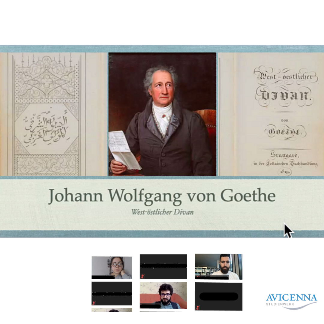 Der West-östliche Divan gilt als Goethes umfangreichstes lyrisches Werk und entfaltet seine dichterische Wirkung noch bis in die Gegenwart. In diesem Sinne tauchte der stipendiatische Lesekreis „Mystische Poesie“ mit dem Alumnus-Stipendiaten Ahmet Aydin am 3. Juli 2021 in eines der Gedichte aus dem Divan ein: „Selige Sehnsucht“ im „Buch des Sängers“. Zusammen sprachen sie über den historischen Entstehungskontext und über die Inspiration durch muslimische Dichter:innen; insbesondere über den Einfluss durch die Werke des persischen Dichters Hafis, der in den Zeilen von Goethe wiederzufinden ist. Ahmet Aydin stellte im Anschluss eines seiner eigenen Gedichte vor, das er im Stile vom Divan verfasst hat. Wir danken dem Lesekreis für den bereichernden Austausch und blicken gespannt auf die kommenden Sitzungen.